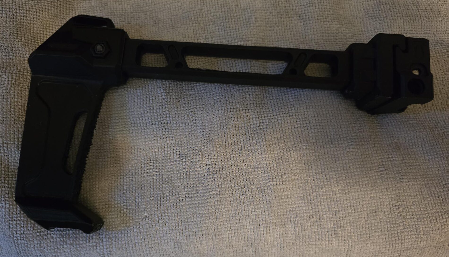 The MOAB Brace Is A Graet Lookig Folding Brace That Can be made Left Or Right Folding. There is also a Cheek Pad That Can Be Installed. Made From PLA+ Printed Strong 8/6/6 Walls 100% Infill. Can Be Mounted On Any Picatinny Rail. This is Considered A Brace.